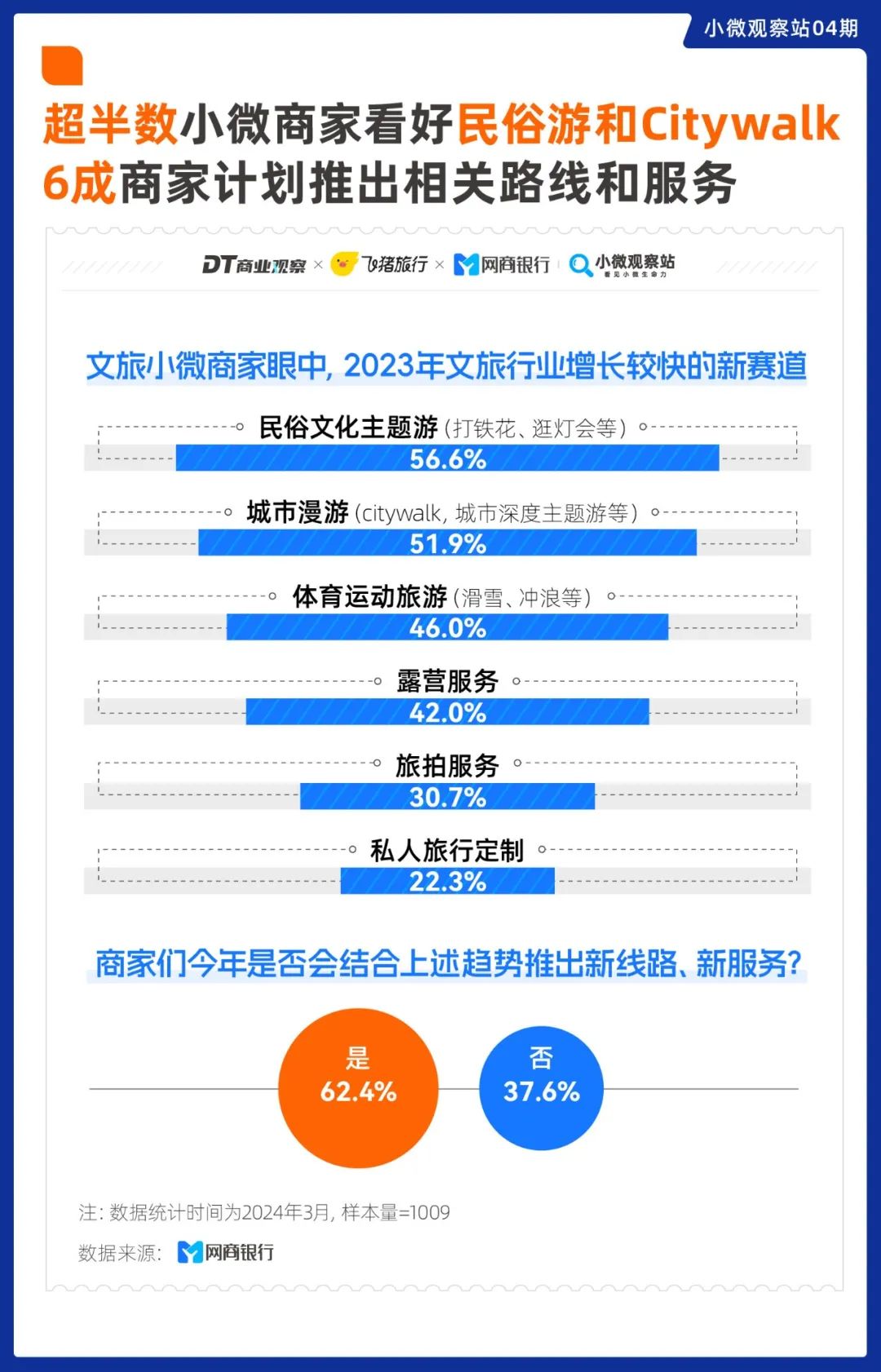 在此背景下(xià),DT商(shāng)業觀察聯合網商(shāng)銀行小微觀察站(zhàn)與飛豬出品《小微觀察站(zhàn):2024文旅經濟小微觀察報(bào)告》,挖掘文旅小微商(shāng)家當前面臨的新(xīn)發展機會。