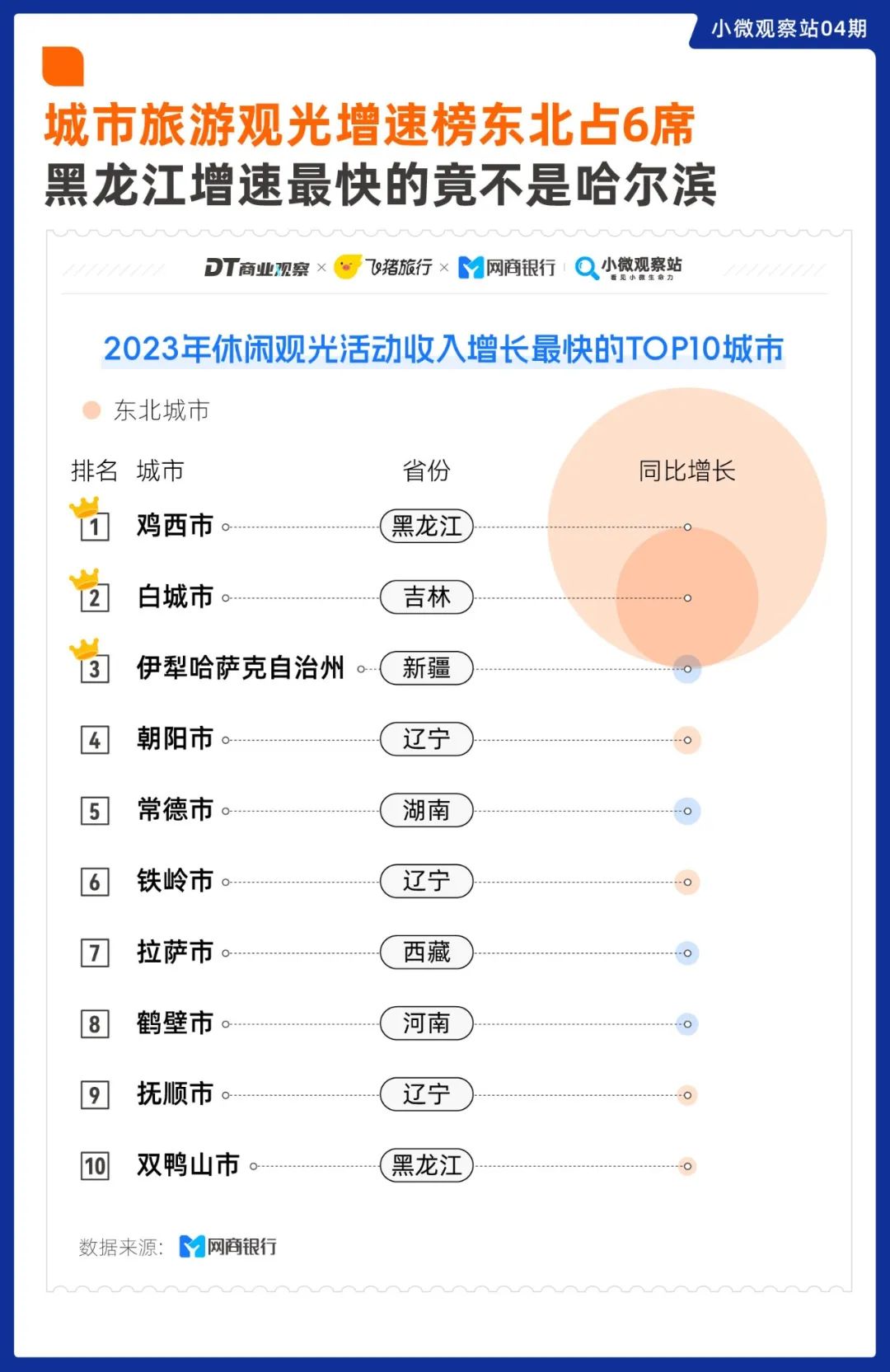 2023年,小微企業休閑觀光收入增長最快(kuài)的TOP10城市(shì)中,東北城市(shì)占據了(le)六席。
