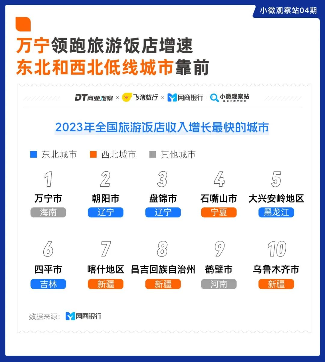 從地區來(lái)看,東北和西(xī)北同樣分(fēn)得了(le)一(yī)杯羹,遼甯朝陽、遼甯盤錦、甯夏石嘴山等城市(shì)的小微酒店(diàn)收入增速領先全國。