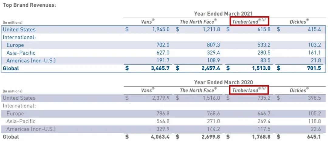 翻看VF集團年報(bào),2021年Timberland全球營收15.13億美元,同比下(xià)降17%,其在亞太地區的營收更是一(yī)路(lù)走低(dī)。
