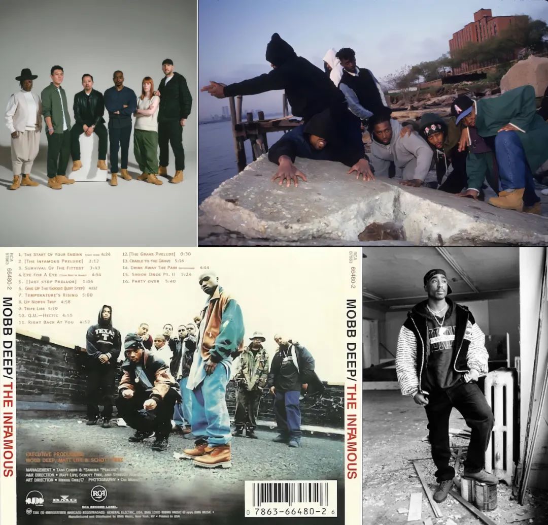 說(shuō)唱組合 Wu-Tang Clan、Biggie Smalls、Boot Camp Clik 樂(yuè)隊等名人(rén)穿上(shàng)大黃(huáng)靴在街頭演出,甚至把它寫進歌(gē)詞,工裝褲+Timberland的風(fēng)格便在Hip-pop圈流行開來(lái),并迅速蔓延到美國年輕人(rén)中。